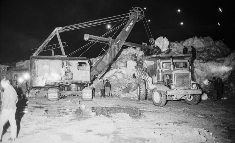 Prima del titolo: Lavoro notturno dopo la caduta del ghiacciaio di Allalin, Mattmark, Settembre 1965. Archivio: Bibliothek Zürich, Bildarchiv.